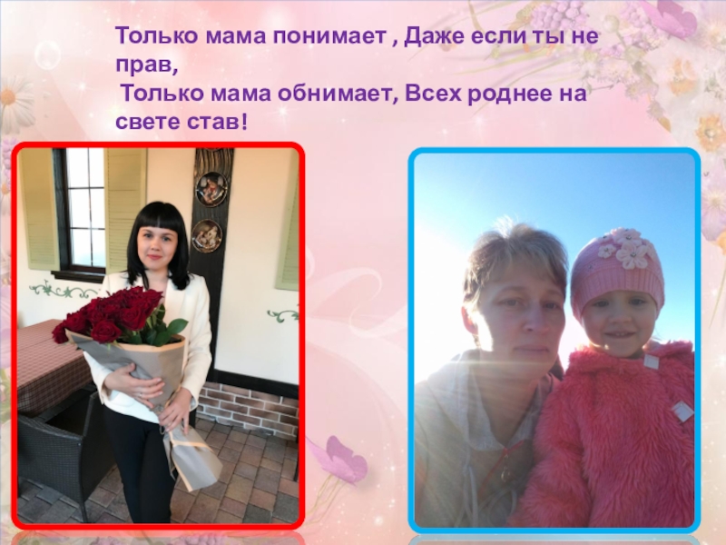 Только мама понимает , Даже если ты не прав, Только мама обнимает, Всех роднее на свете став!