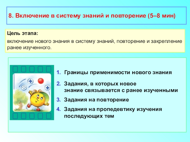8. Включение в систему знаний и повторение (5–8 мин)