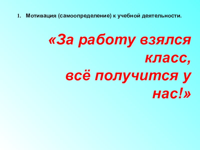 Мотивация (самоопределение) к учебной деятельности.