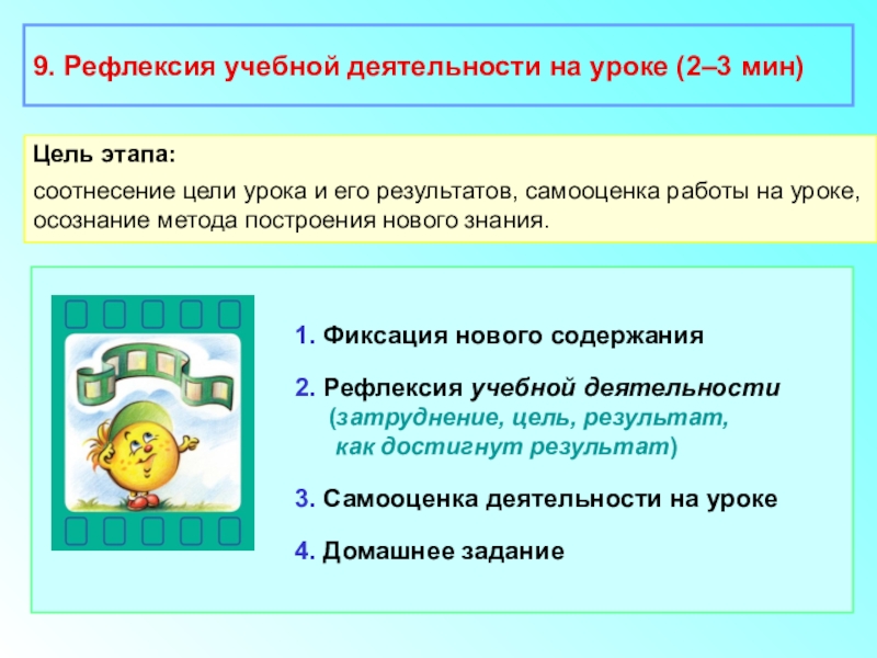 9. Рефлексия учебной деятельности на уроке (итог урока).