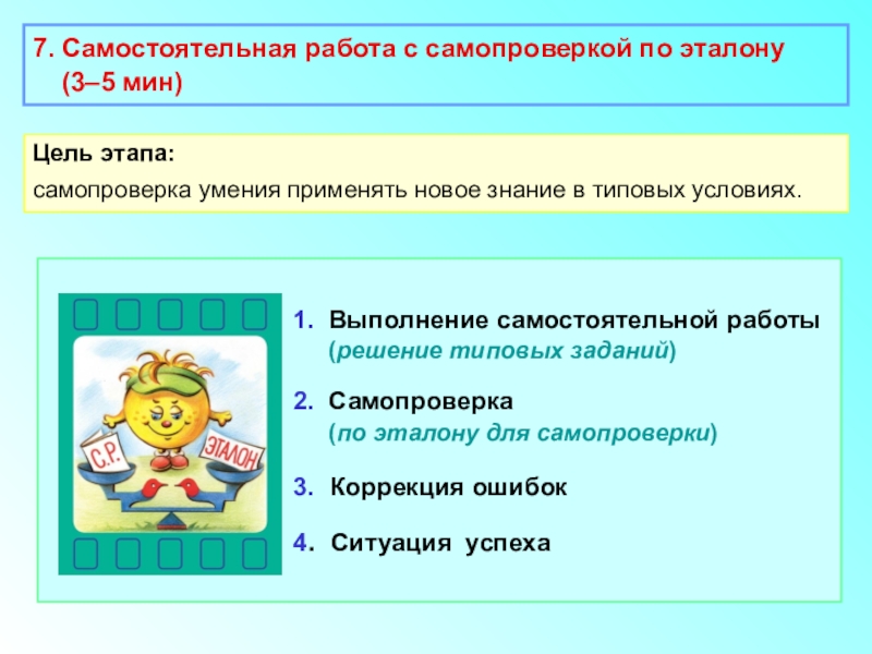 самопроверка умения применять новое знание в типовых условиях.