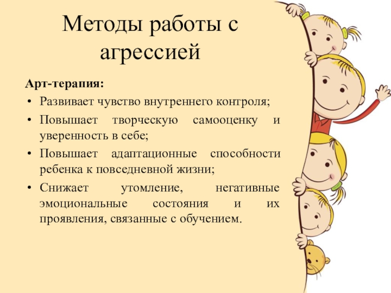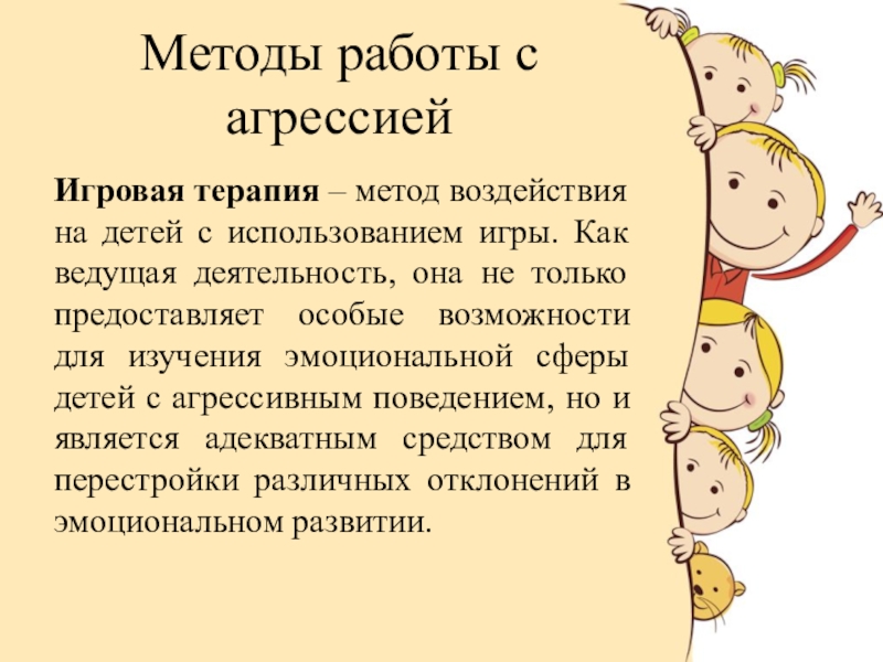 Слайд 10Методы работы с агрессией