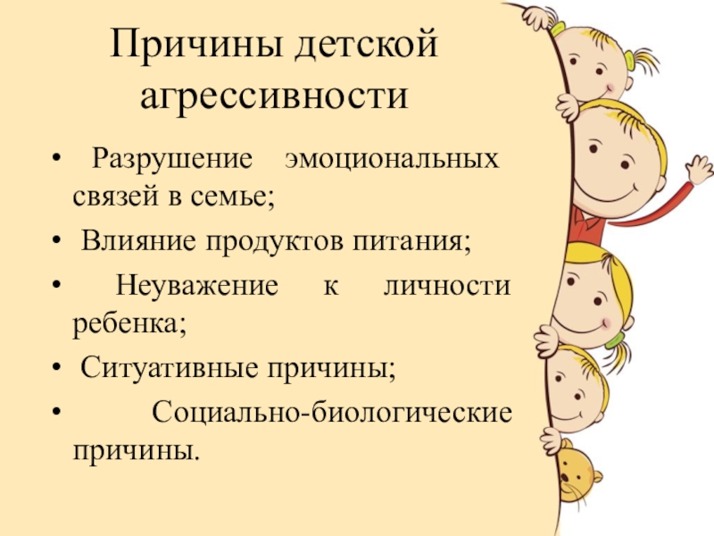 Слайд 3Причины детской агрессивности