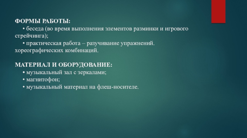• практическая работа – разучивание упражнений. хореографических комбинаций.
