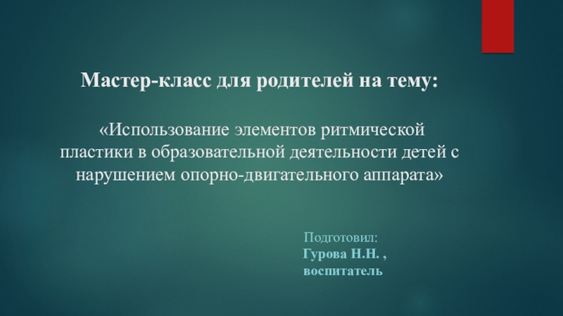 Данный мастер – класс предполагает разучивание упражнений по ритмопластике для дальнейшего применения их родителями в игровой деятельности с детьми.