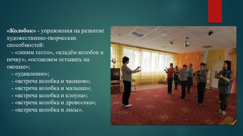 Слайд 12«Колобок» - упражнения на развитие художественно-творческих способностей: