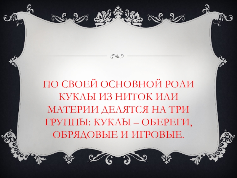 Слайд 5По своей основной роли куклы из ниток или материи делятся на