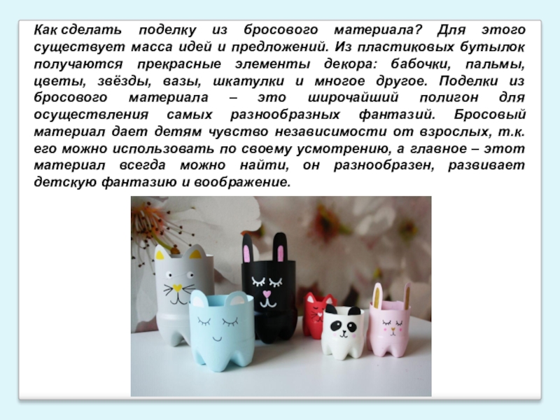 Слайд 3Как сделать поделку из бросового материала? Для этого существует масса идей и