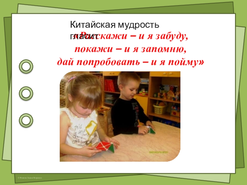 «Расскажи – и я забуду, покажи – и я запомню, дай попробовать – и я пойму» Китайская