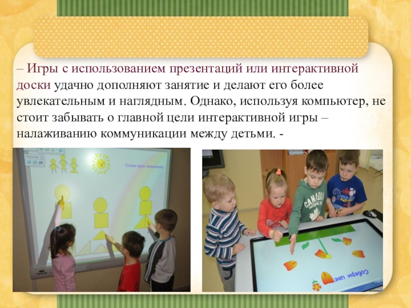 -Игры, знакомящие детей с окружающим миром. Для дошкольников берутся темы попроще: «Домашние животные», «Твердое - мягкое», «Кто живет в лесу» и т. д.