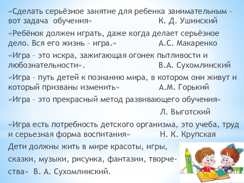 Увлекаясь игрой можно потерять образовательное содержание;