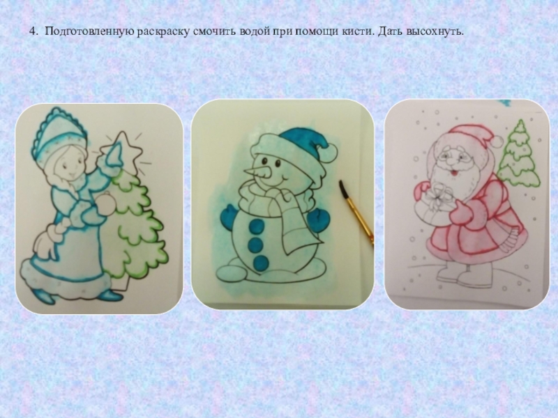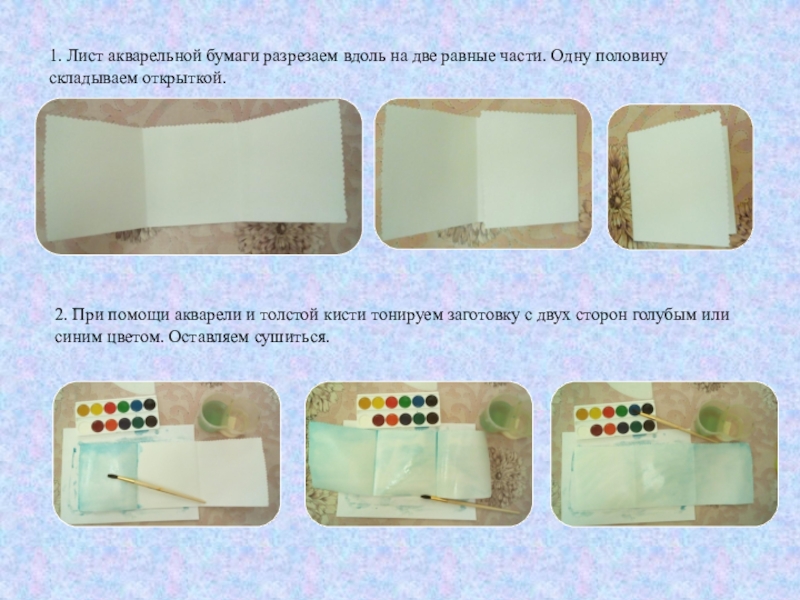 2. При помощи акварели и толстой кисти тонируем заготовку с двух сторон голубым или синим цветом. Оставляем сушиться.