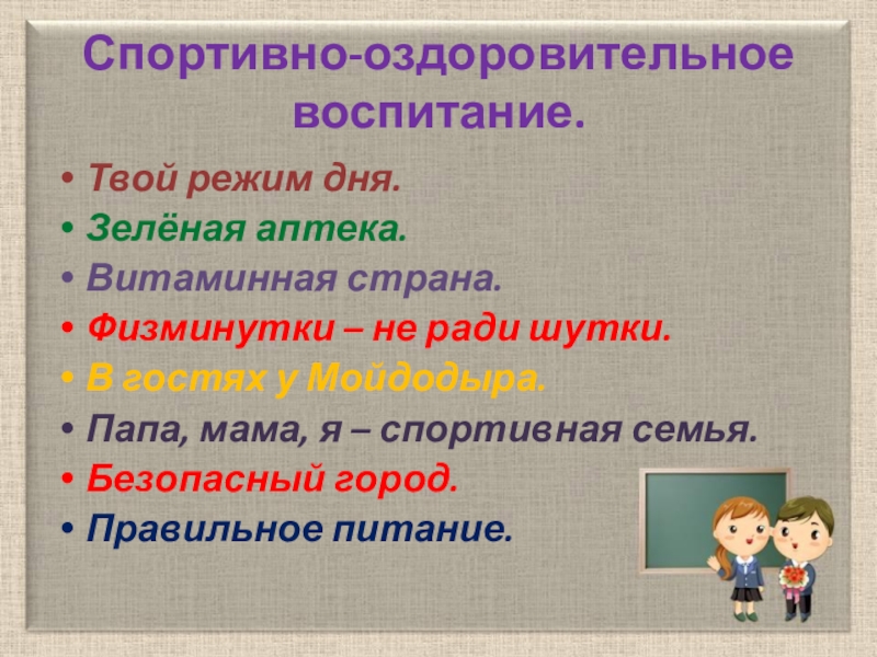 Слайд 22Спортивно-оздоровительное воспитание.