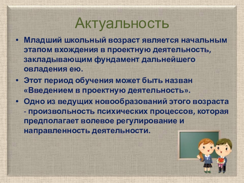 Младший школьный возраст является начальным этапом вхождения в проектную деятельность, закладывающим