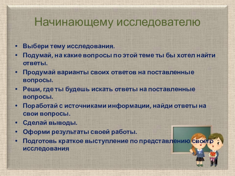 Слайд 11Начинающему исследователю