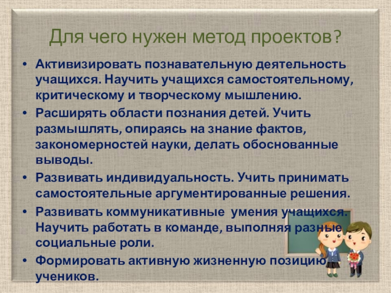 Слайд 5Для чего нужен метод проектов?