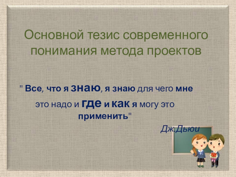 Слайд 3Основной тезис современного понимания метода проектов