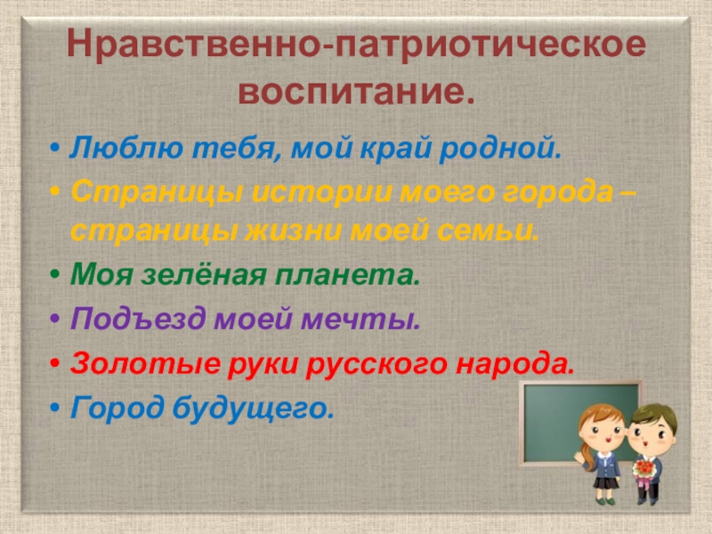 Слайд 23Нравственно-патриотическое воспитание.