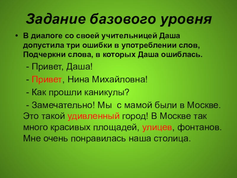 В диалоге со своей учительницей Даша допустила три ошибки в