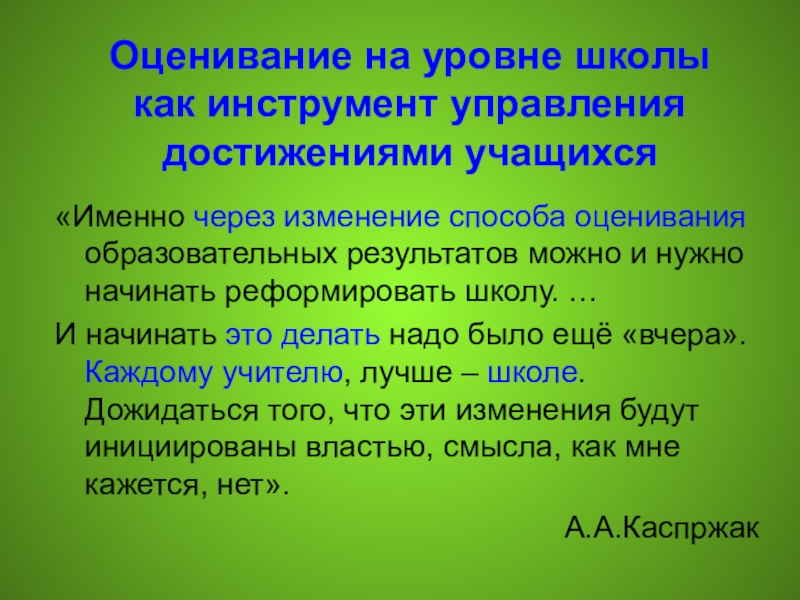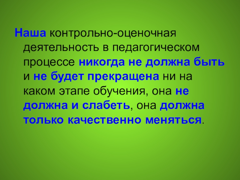 Слайд 3Наша контрольно-оценочная деятельность в педагогическом процессе никогда не должна быть и