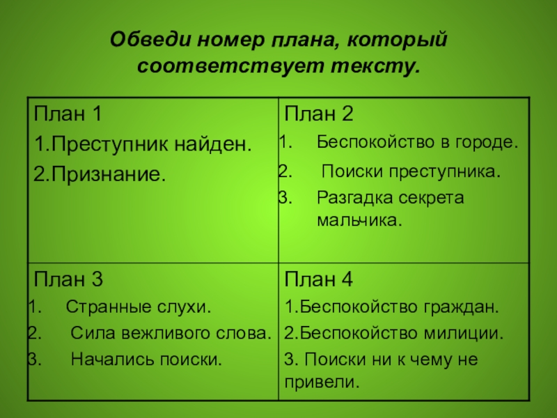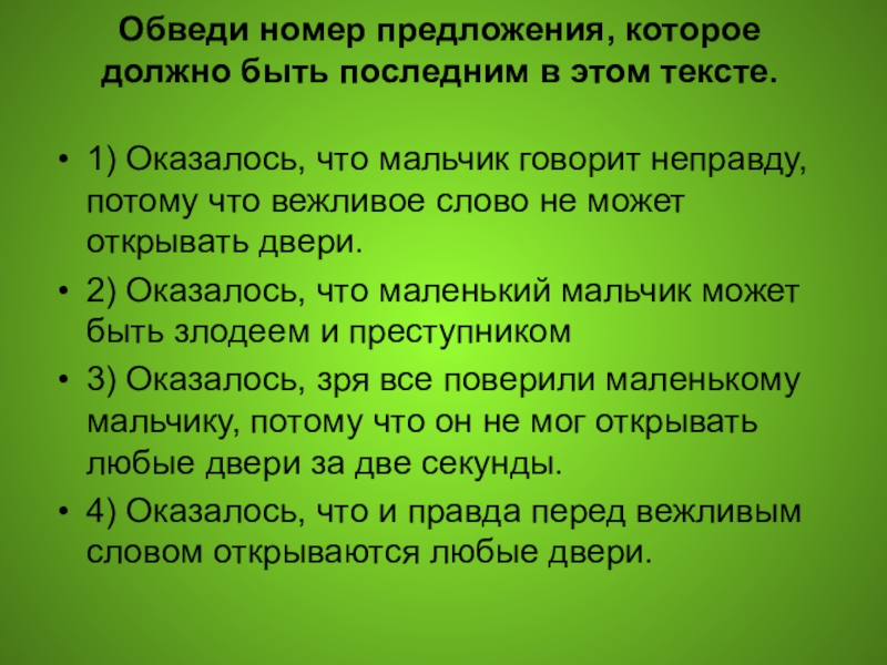 Слайд 55Обведи номер предложения, которое должно быть последним в этом тексте.