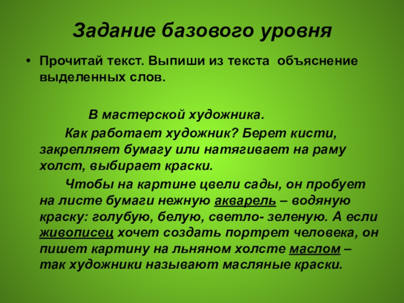 Стоит чудесный май. Как хорошо кругом в эту весеннюю пору! Ласковое солнце греет землю своим теплом. Ранним утром ты бежишь в ближнюю рощу. После тёплого дождя появилась зелёная трава. Синие, желтые, красные цветы подняли головки. В зелени травы белеют ландыши. Ты вдыхаешь тонкий запах нежных цветов.
