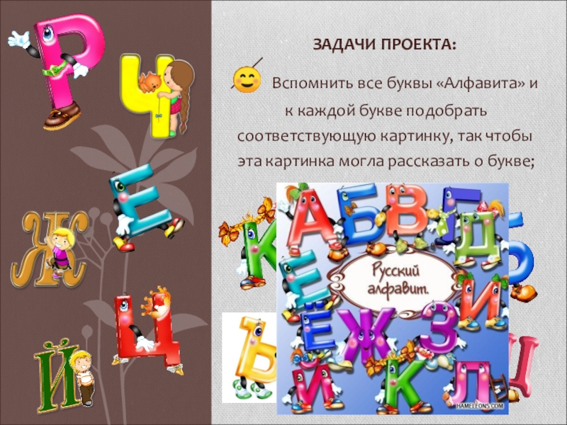 туре) находим картинки, соответствующие букве;