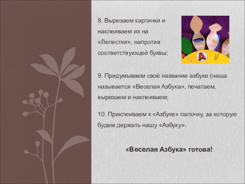 10. Приклеиваем к «Азбуке» палочку, за которую