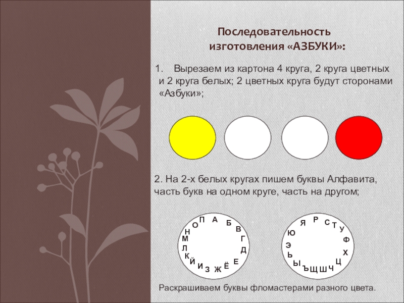2. На 2-х белых кругах пишем буквы Алфавита,