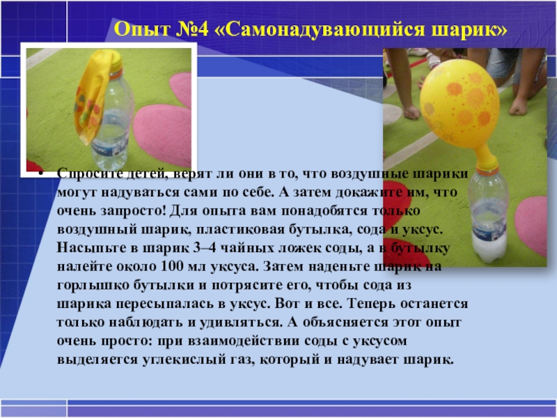Слайд 9Опыт №4 «Самонадувающийся шарик»