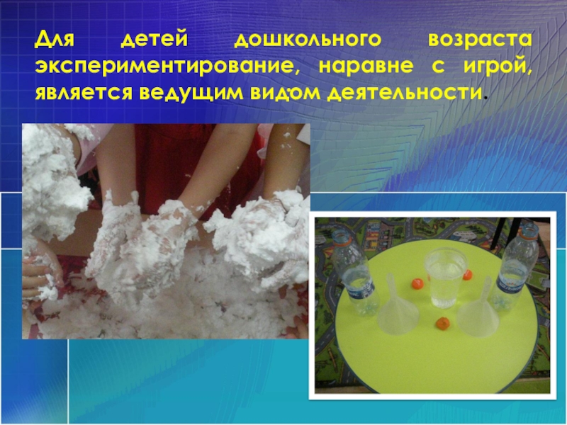 Для детей дошкольного возраста экспериментирование, наравне с игрой, является ведущим видом