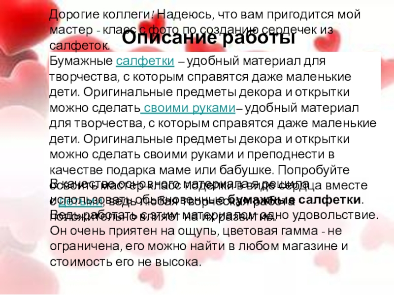 Дорогие коллеги! Надеюсь, что вам пригодится мой мастер - класс с фото по созданию сердечек из салфеток.