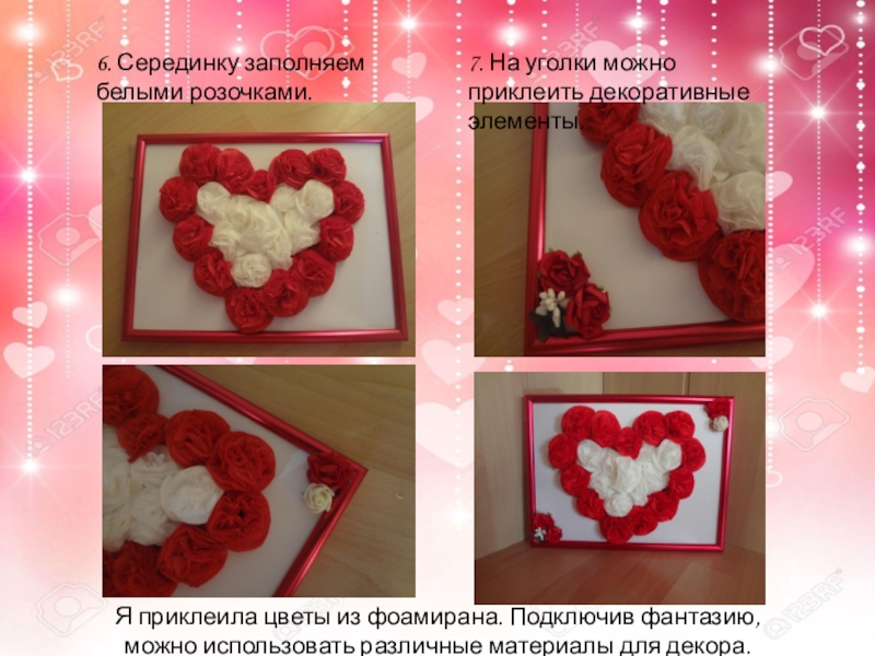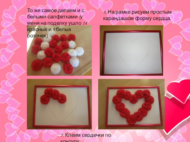 5. Клеим сердечки по контуру.