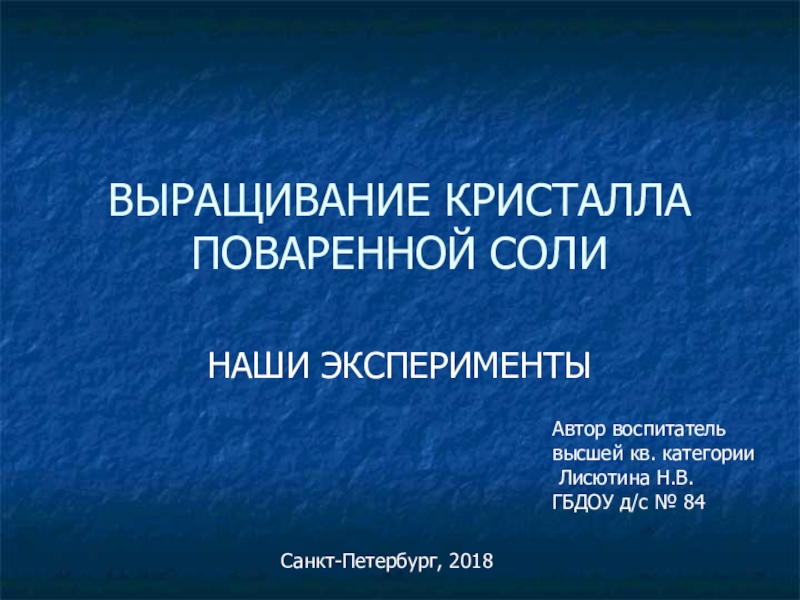 Слайд 1ВЫРАЩИВАНИЕ КРИСТАЛЛА ПОВАРЕННОЙ СОЛИ