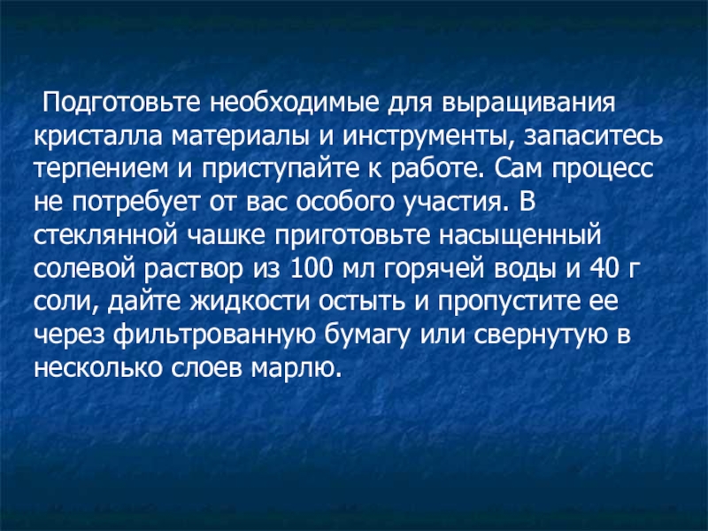 Слайд 6 Подготовьте необходимые для выращивания кристалла материалы и инструменты, запаситесь терпением и