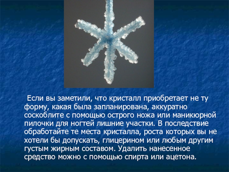 Слайд 11 Если вы заметили, что кристалл приобретает не ту форму, какая была