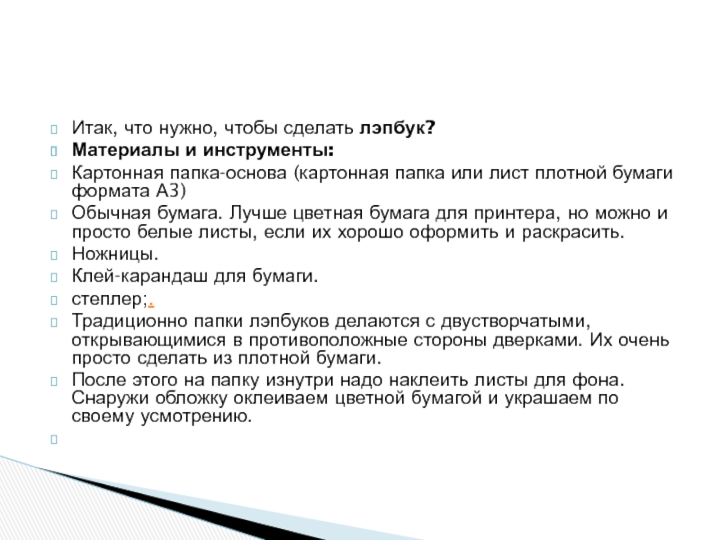 Слайд 7Итак, что нужно, чтобы сделать лэпбук?