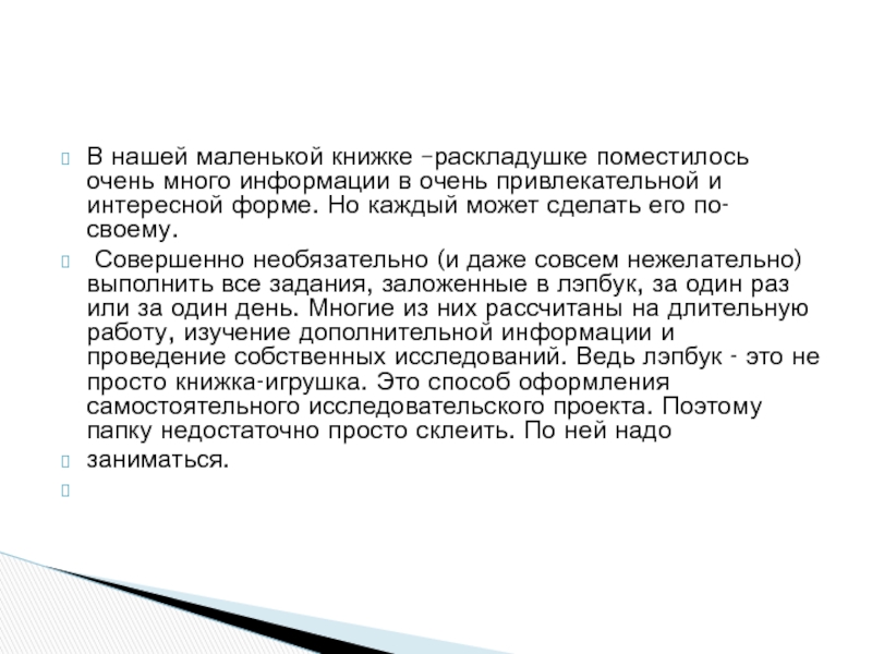 Слайд 9В нашей маленькой книжке –раскладушке поместилось очень много информации в очень