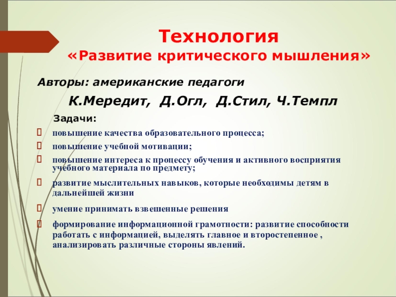 «Развитие критического мышления»: