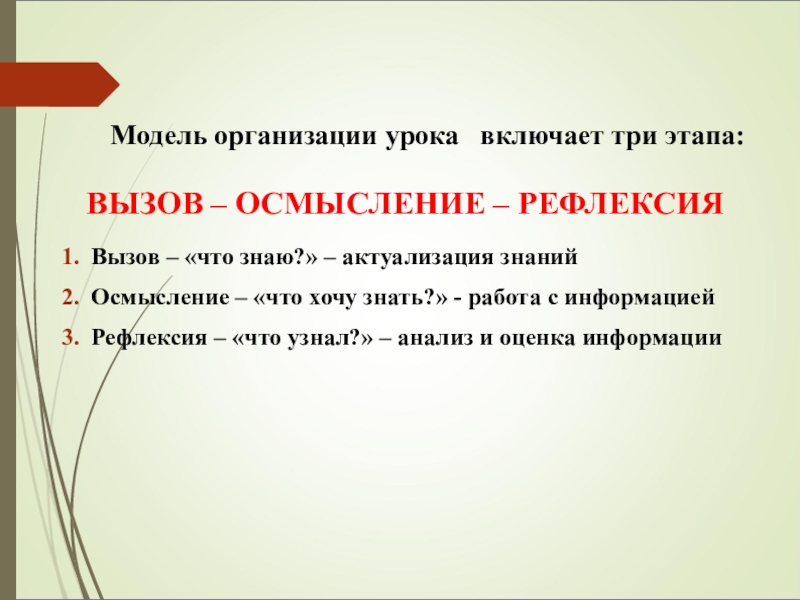 ВЫЗОВ – ОСМЫСЛЕНИЕ – РЕФЛЕКСИЯ