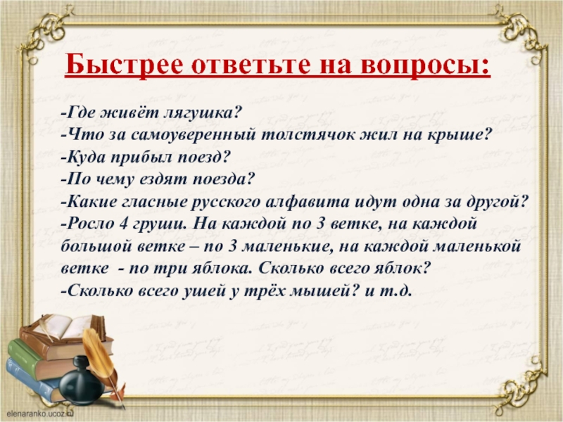 Это сайт презентаций, где можно хранить и обмениваться своими презентациями, докладами, проектами, шаблонами в формате PowerPoint с другими пользователями. Мы помогаем школьникам, студентам, учителям, преподавателям хранить и обмениваться учебными материалами.