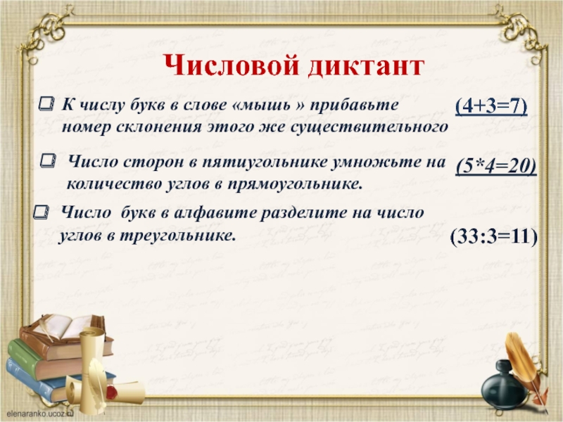 К числу букв в слове «мышь » прибавьте номер склонения этого же существительного