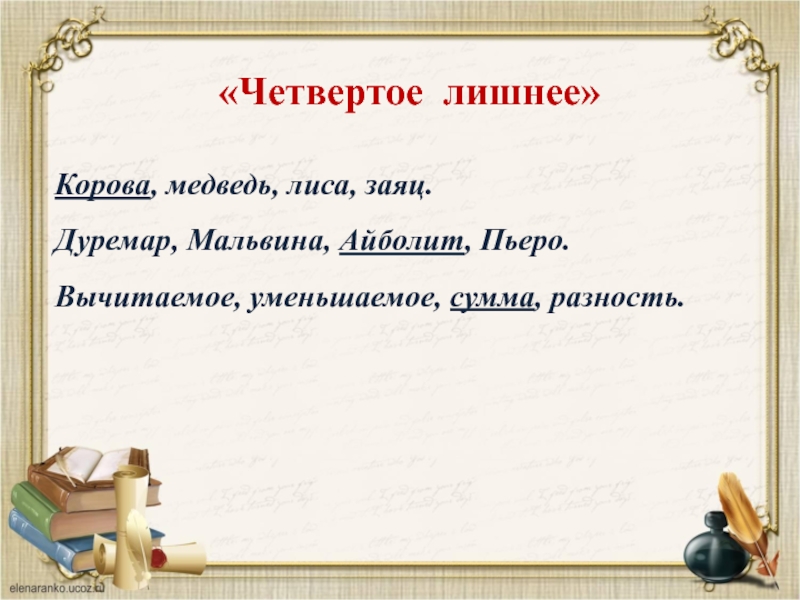 Ответы: 1.Сосна-шишка. 2.Кипяток-айсберг. 3.Мальвина-Базилио. 4. Поганка-опёнок.