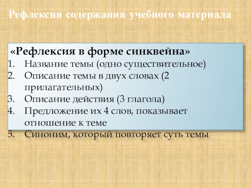 Рефлексия содержания учебного материала