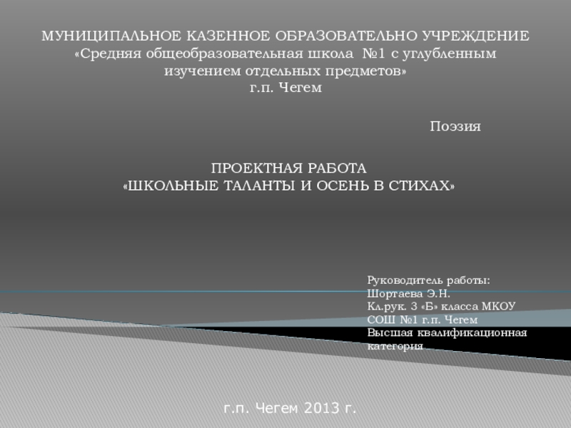 Кл.рук. 3 «Б» класса МКОУ СОШ №1 г.п. Чегем