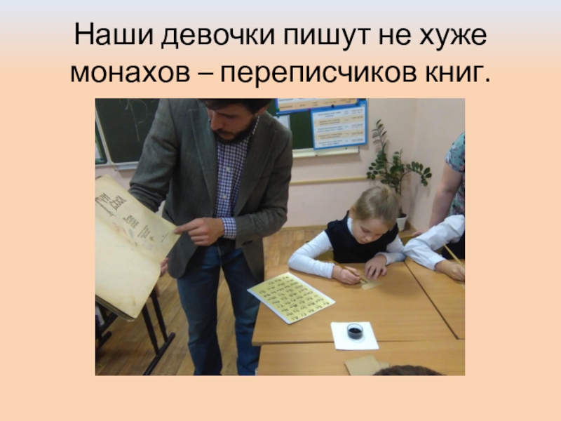Первый мастер-класс был проведен по теме «Аз, Буки, Веди или История русской письменности». За считанные мгновенья мы переместились во времени и оказались учениками древнерусской школы . Оказалось нелегко писать на берестяных дощечках, учить буквы древнерусской азбуки и расшифровывать буквы в старославянских книгах. Очень интересно выводить буквы на церах, восковых дощечках. А еще мы научились писать свои вензели пером и чернилами.