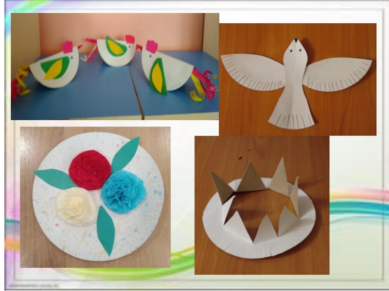 Работа по изготовлению поделок из тарелки учит детей правильному обращению с режущими инструментами, учит технике склеивания, складывания. Все эти операции требуют дополнительных усилий, а значит, укрепляются крупные и мелкие мышцы рук, развивается сноровка, ловкость пальчиков, в результате общая координация движений.