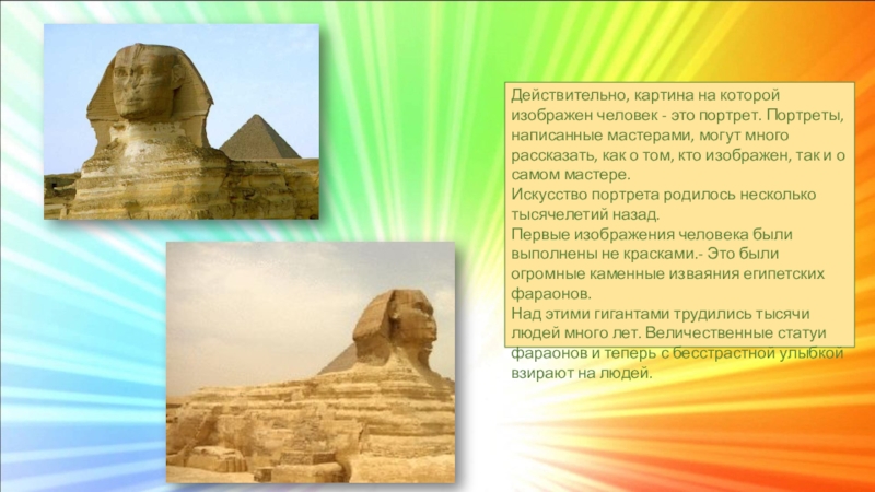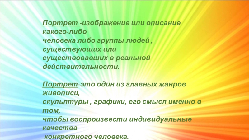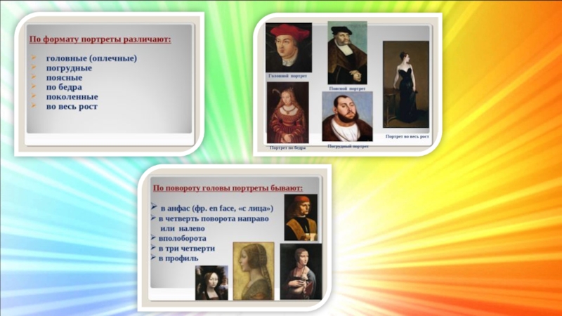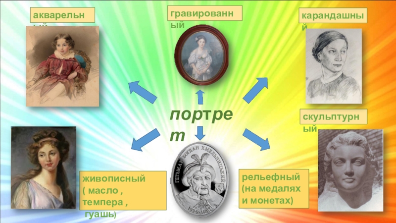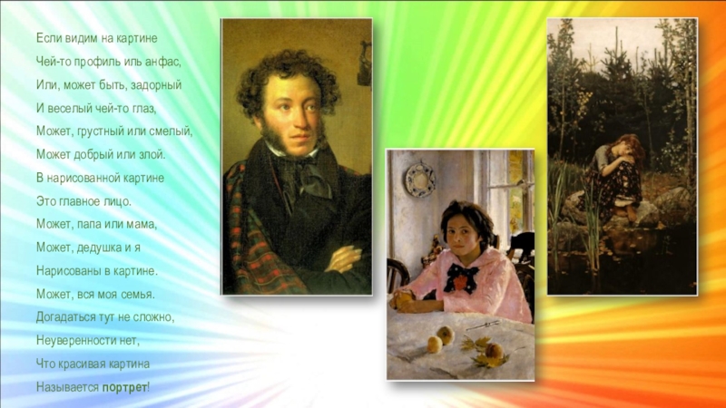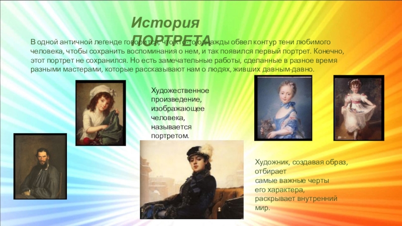 Художественное произведение, изображающее человека, называется портретом.