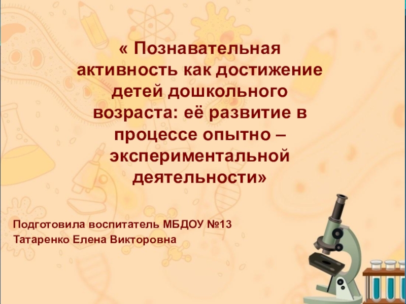 дошкольного возраста: её развитие в процессе опытно – экспериментальной деятельности»