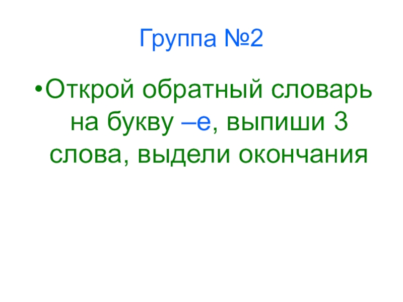 Группа №2Открой обратный словарь на букву –я, выпиши 3 слова, кроме первого, выдели окончания